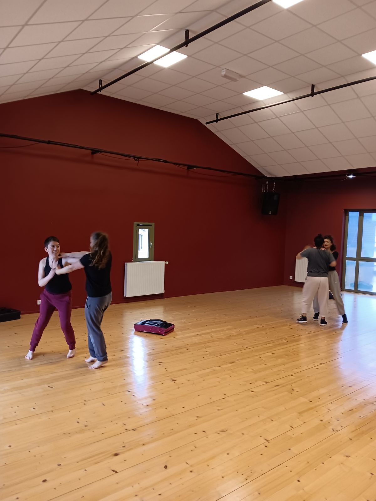 Stage de découverte du Krav Maga avec la Compagnie de danse Daruma Milène Duhameau, dans le cadre de la préparation de leur prochaine chorégraphie "Yes, we fight !" qui devrait être finalisée en mars 2025